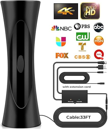 Amazon Com Forlovv Newest Tv Antenna Indoor Tv Antenna For Digital Tv 150 Miles Range With 19 6ft Long Coax Cable Support All Television For Free Local Channels 4k Hd 1080p Vhf Uhf With Built In Amplifier